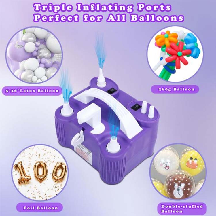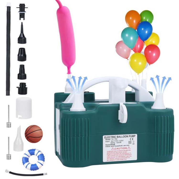 پمپ بالون برقی مجهز به 5 نازل تورم حرفه ای ، شیلنگ فرمت ، سوزن دو سوزن و شیلنگ تورم توپ است که می تواند به راحتی با تجهیزات بزرگی مانند تشک های بادی ، حلقه های شنا ، توپ های یوگا ، قایق های بادی و می تواند توپ های ورزشی مانند بسکتبال ، فوتبال و والیبال را به طور دقیق باد کند. یک برش مخصوص بالون و گره دار هوشمند به طور خاص گنجانده شده است ، به طوری که می توان برش و گره زدن بالون را در یک مرحله انجام داد. حتی افراد تازه کار می توانند به سرعت شکل دهی بالون در سطح حرفه ای را انجام دهند.