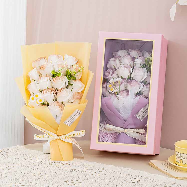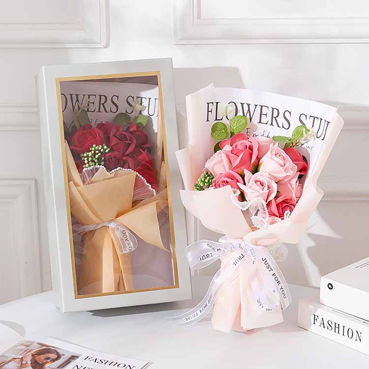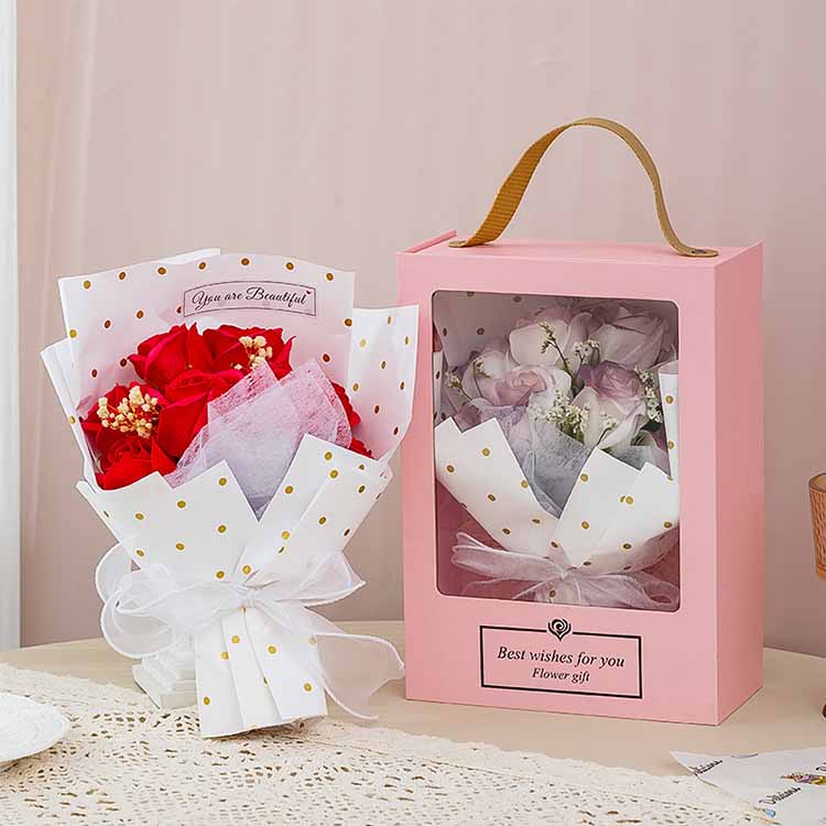 جعبه کادو دسته گل دارای مهر زنی داغ، حاشیه های شفاف و مواد برجسته است که می تواند گل ها را لایه لایه تر و مرغوب تر کند. مواد مورد استفاده مقوا، لمینیت و مواد سازگار با محیط زیست هستند که ضد فشار و ضد تغییر شکل هستند. در طول هر جشنواره، مشتریان می توانند بر اساس نیاز خود خرید کنند که بسیار مقرون به صرفه است.