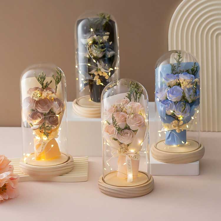 هنگامی که مشتری وارد می شود، نورهای درخشان گل شیشه ای فورا توجه آنها را جلب می کند. آنها در روز ولنتاین، کریسمس، روز شکرگزاری، روز پدر و روز مادر این هدیه را برای عزیزان، والدین و دوستانشان درست می کنند. آنها را می توان در اتاق نشیمن، بالکن یا کنار تخت قرار داد و همیشه آرزوهای قلبی شما را برآورده می کند. آنها یک هدیه تعطیلات عالی هستند. گل های حفظ شده در داخل احساسات ماندگار را منتقل می کنند.