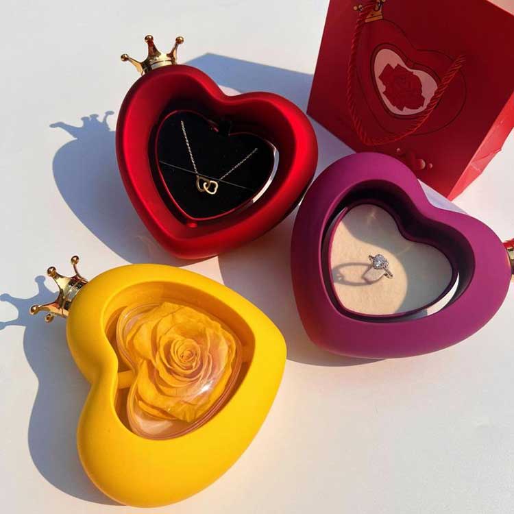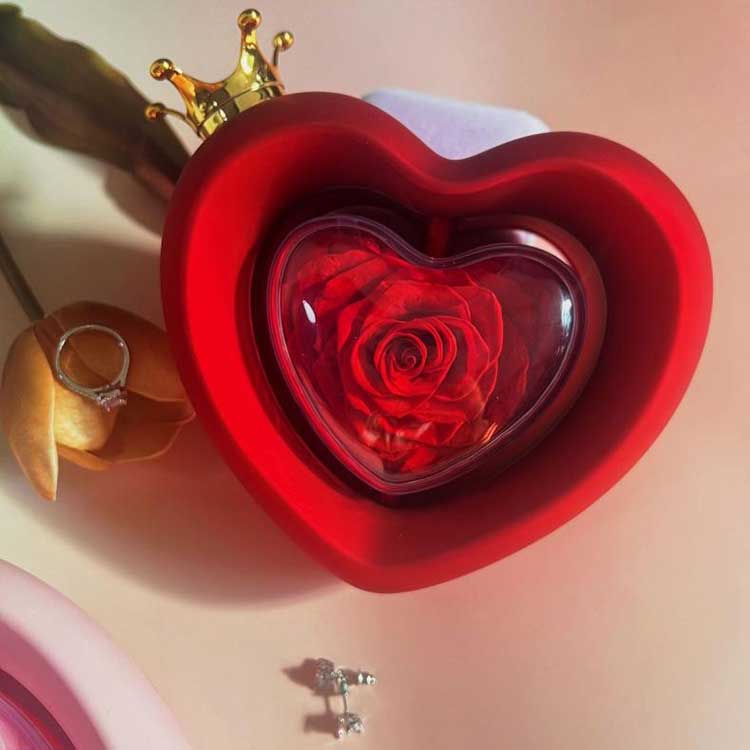 جعبه جواهرات رز شکل قلب، شکل قلب نماد عشق است. این ترکیبی از معنای برای همیشه گرامی بودن است.