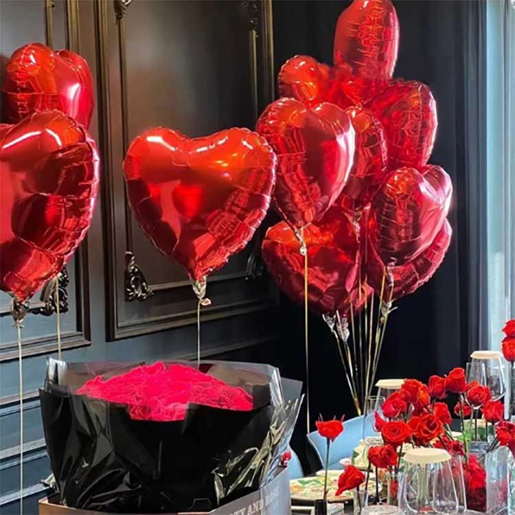 بادکنک های فویل آلومینیومی قلب شکل از مواد نایلونی ضخیم ساخته شده اند، این بادکنک ها دارای طرح های واضحی هستند که با جوهرهای سازگار با محیط زیست چاپ شده اند. در هر بسته 50 بادکنک وجود دارد.